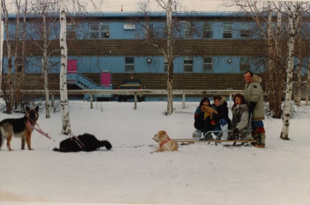 They had met years prior, in another northern community. My husband, a Mountie, was working when she was brought into the RCMP Detachment cells after being arrested for starting…and ending.. a fight at the bar across the street. The two officers that lead her in were having difficulty getting Lilly into the cell. Hands grasping either side of the cell door and legs spread, feet firmly planted, she wasn’t moving. Ron ducked under her arm, stepped into the cell and said, “Come on Lilly. Come in for me.” Well…she took that as an invitation…and released her grasp and stepped quickly into the cell. Thankfully not before my husband, even quicker, ducked out and slammed the door. I think for Lilly, it was love at first sight.